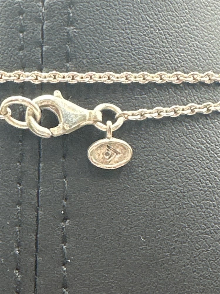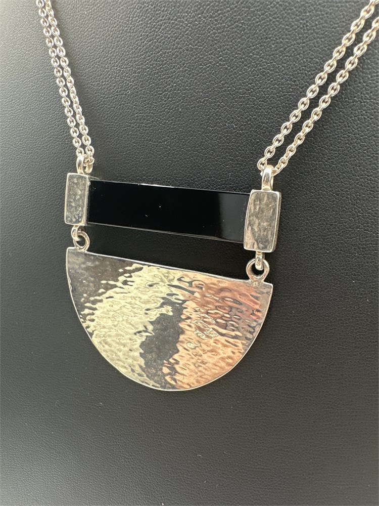 A Silpada N3439 Modern Contrast sterling silver necklace. Delicate sterling silver chain with a black agate and hammered sterling silver pendant. 29" Good condition. 27g