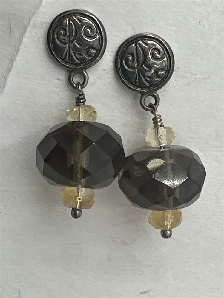 Silpada Oxidized Sterling Faceted Smoky Quartz & Citrine Earrings P1419 View Watchlist >