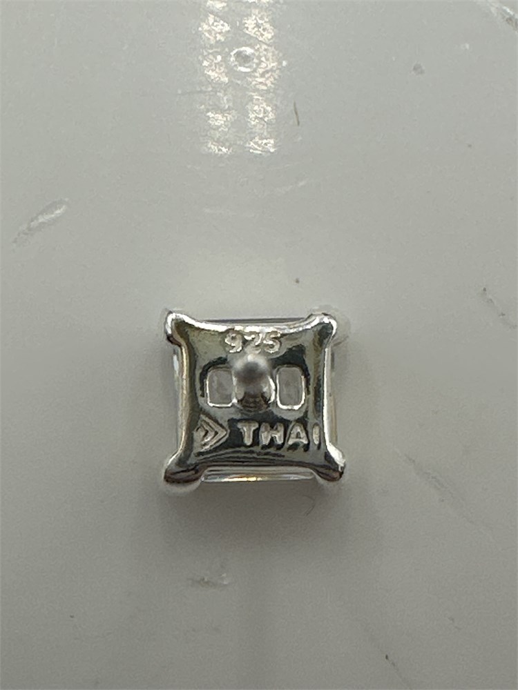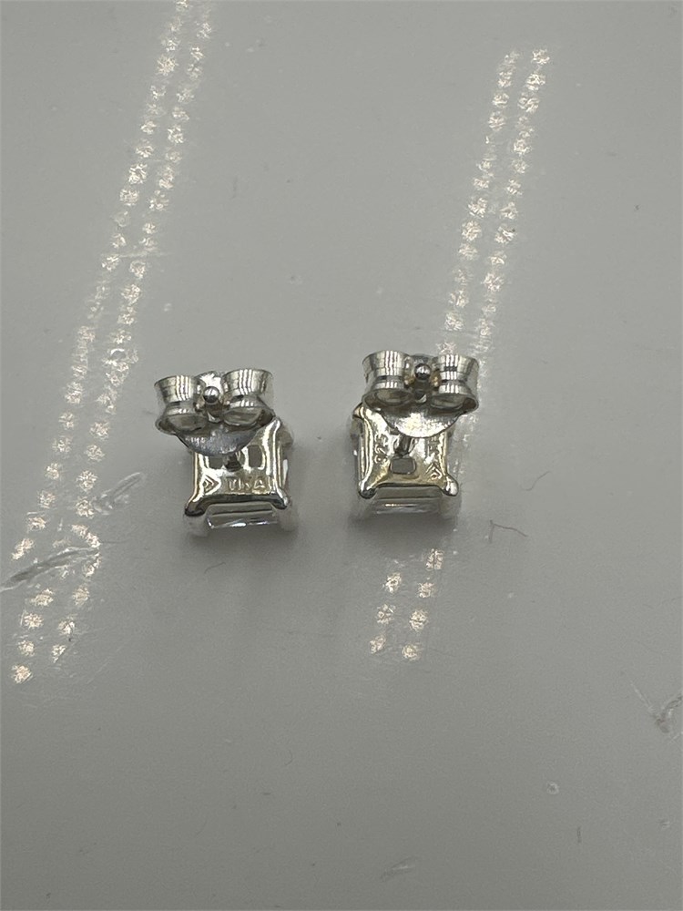 Silpada "Noble" post earrings P1304. These are princess-cut stud earrings featuring clear cubic zirconia stones set in a four-prong sterling silver mounting. Length: 0.187" Good condition. 2g