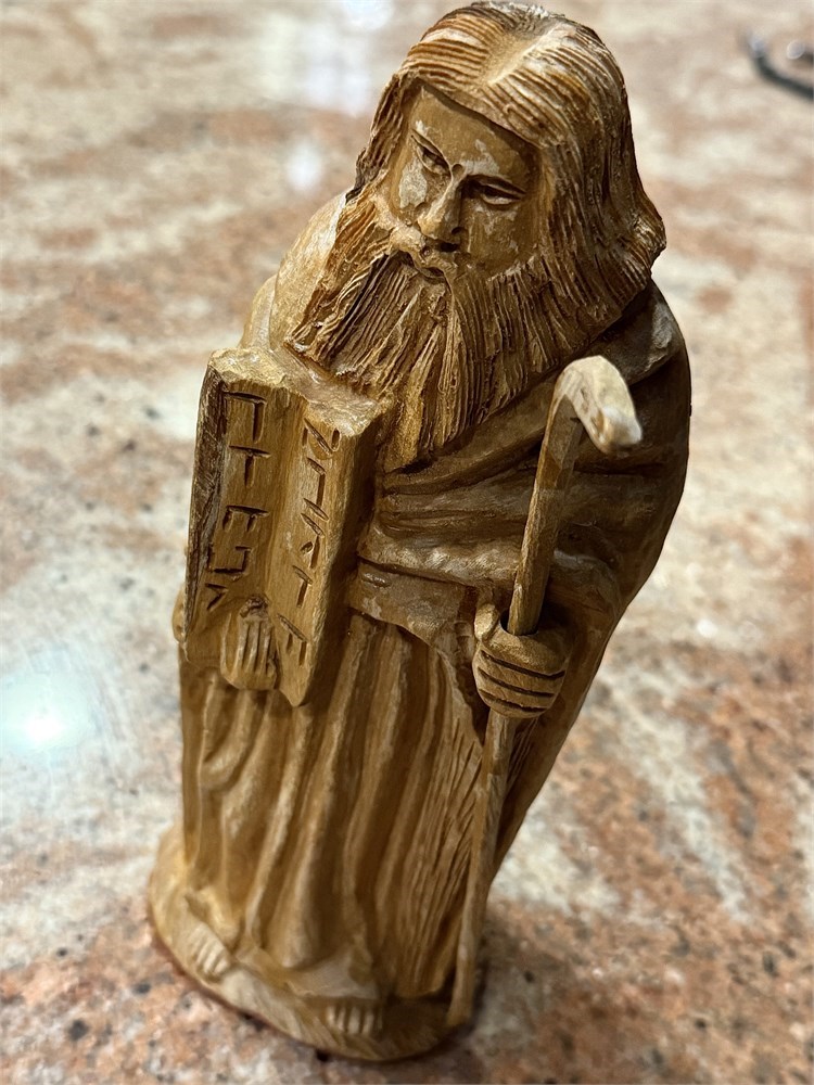 9” Tall Hand-Carved Wooden Prophet “Moses” with Tablets & Staff View Watchlist >