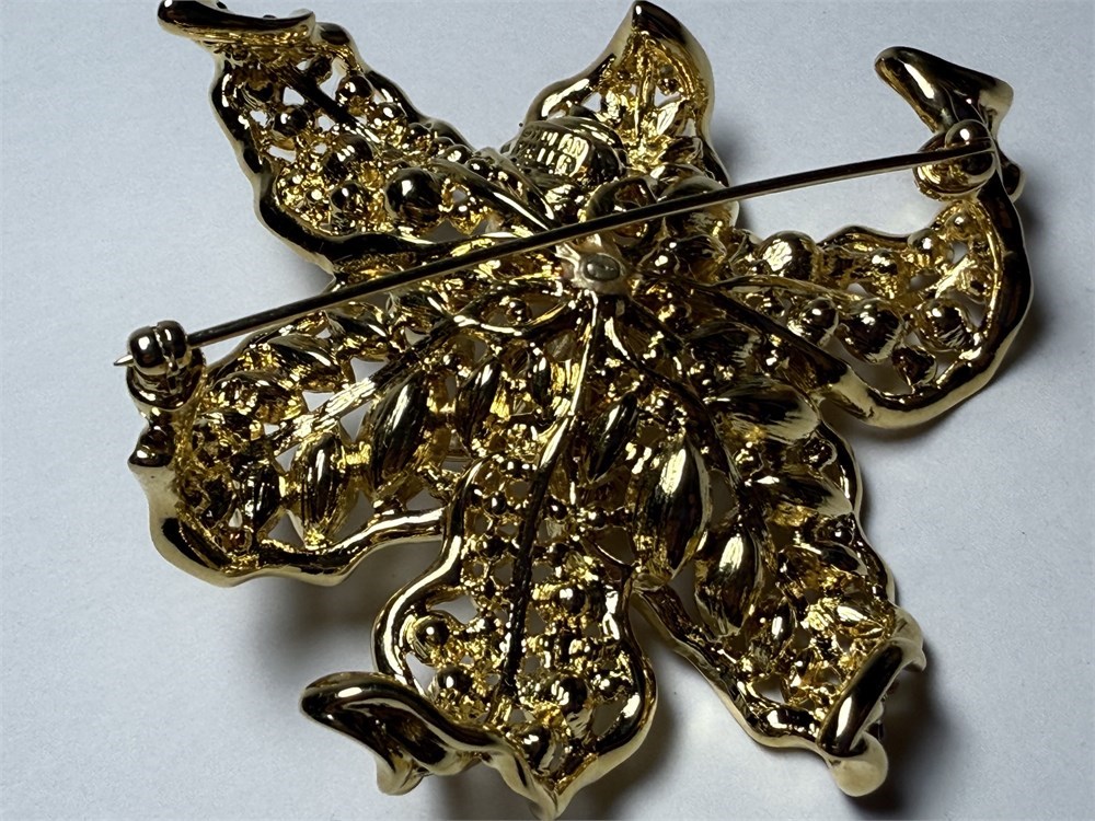 • Style: Dimensional, elaborate floral, vintage costume jewelry