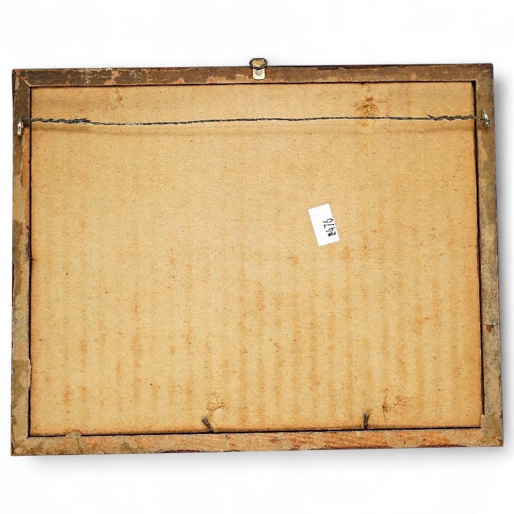 Original hand-colored photograph by American artist Wallace Nutting depicting a serene body of water in the foreground. The water is bordered by lush green grassy banks and trees, with wooded hills or mountains visible in the background. The photograph is signed by the artist and framed. Wallace Nutting (1861–1941) was an American minister, photographer, and entrepreneur known for popularizing the Colonial Revival style through his hand-colored photographs and reproduction furniture. His idealized depictions of New England landscapes and interiors were widely collected in the early 20th century and remain a significant part of American photographic history. Dimensions: 10" H x 8" W. Good condition.