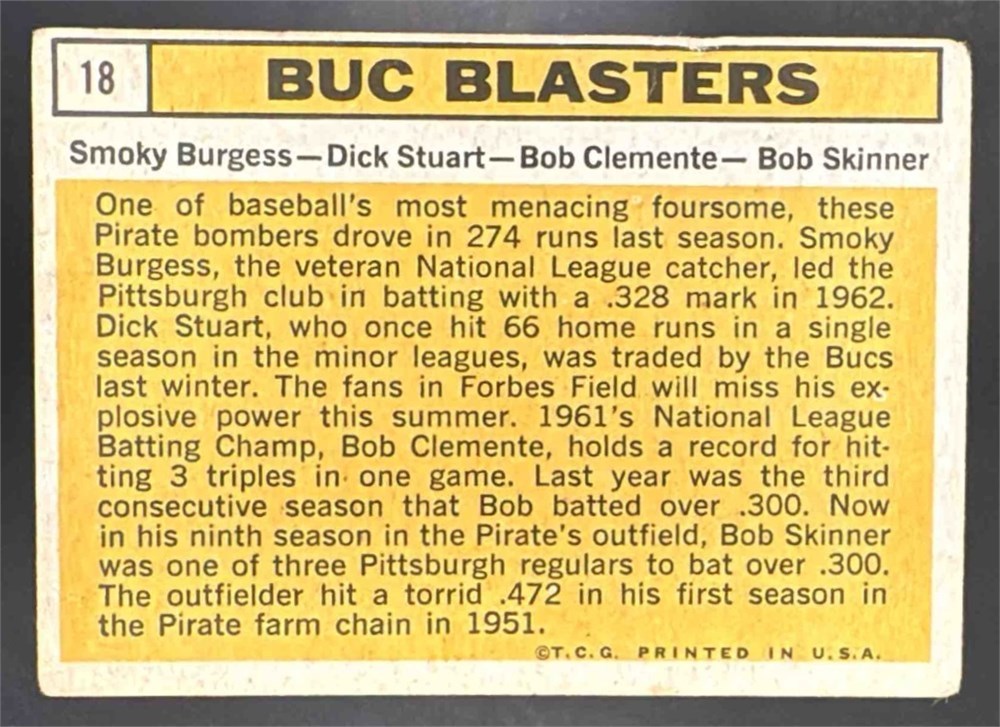 1963 Topps Buc Blasters Roberto Clemente Pirates #18 View Watchlist >
