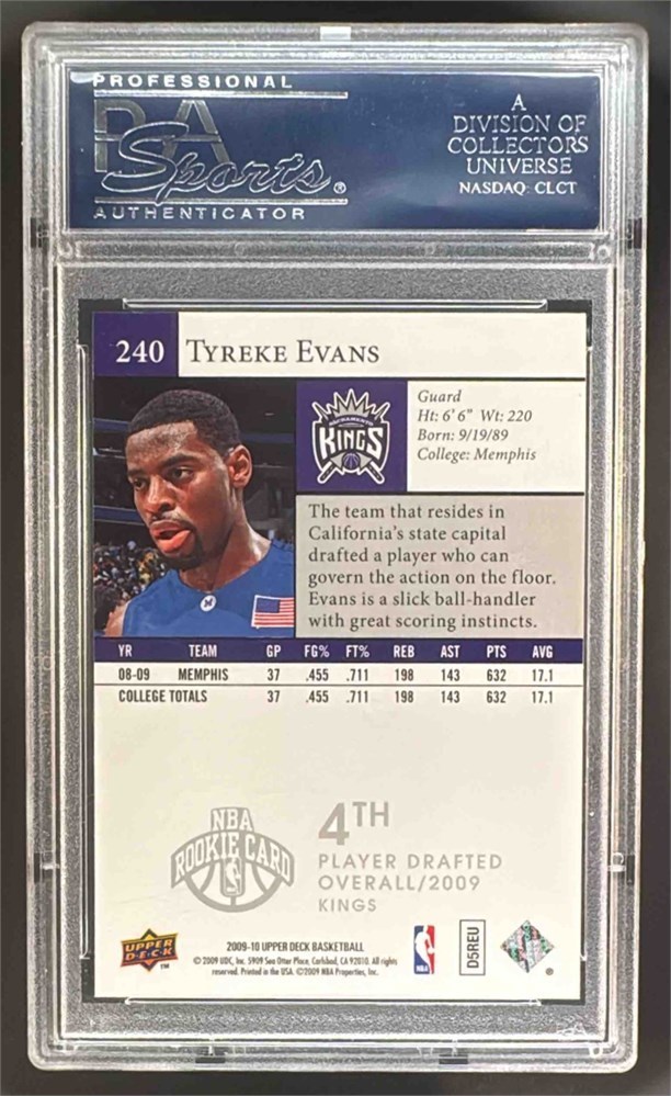 2009-10 Upper Deck Basketball Tyreke Evans #240 RC Sacramento Kings PSA 9