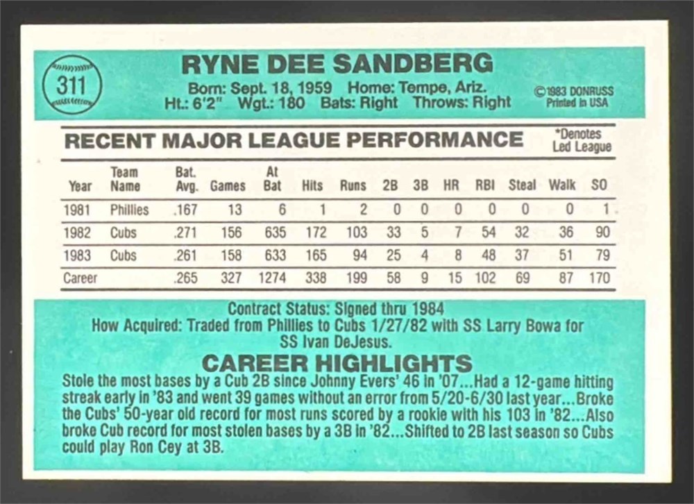1984 Donruss Ryne Sandberg #311 Cubs View Watchlist >
