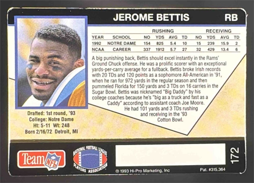 1993 Action Packed Jerome Bettis #172 RC Rams View Watchlist >