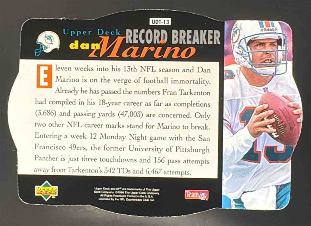 1996 SPX Record Breaker Dan Marino Die Cut