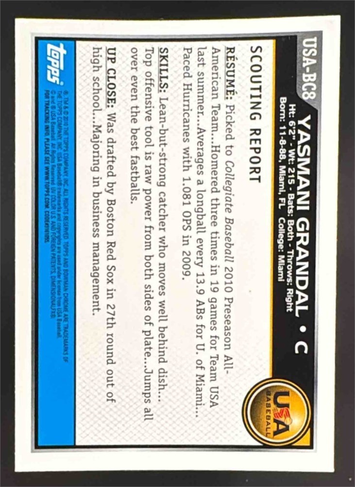 2010 Bowman Chrome Yasmani Grandal #USA-BC8 USA Baseball USA View Watchlist >