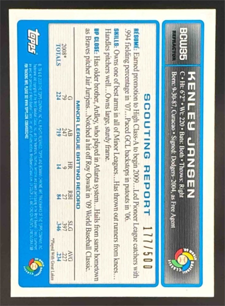 2009 Bowman Chrome Kenley Jansen #BCW35 WBC Prospects Refractors 177/500 View Watchlist >