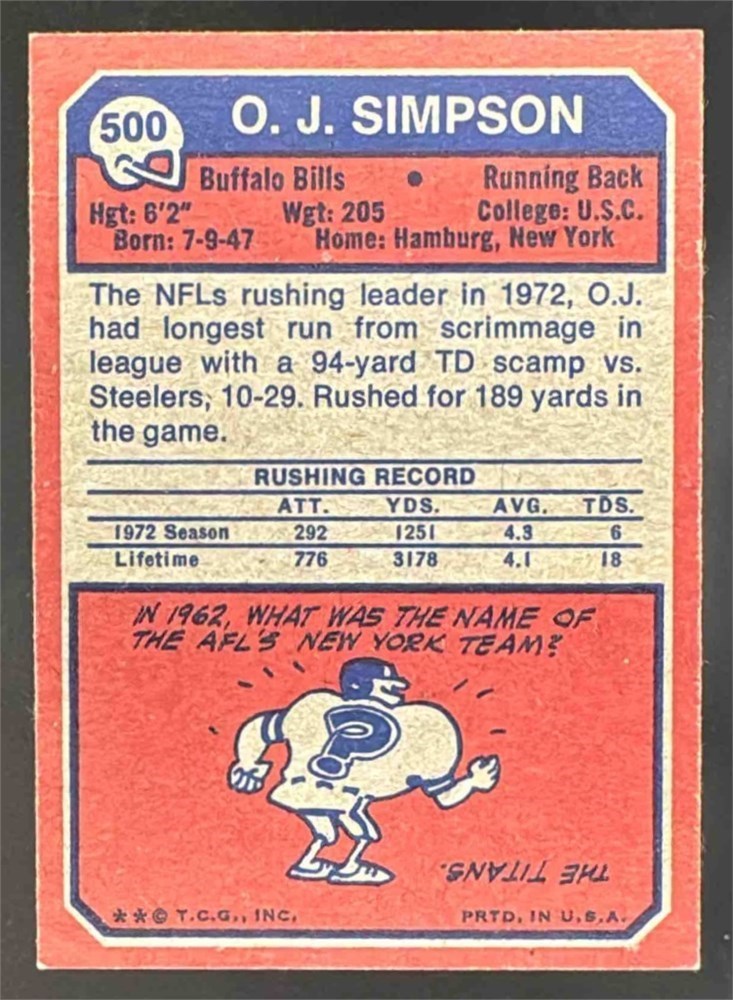 1973 Topps O.J. Simpson #500 Bills View Watchlist >
