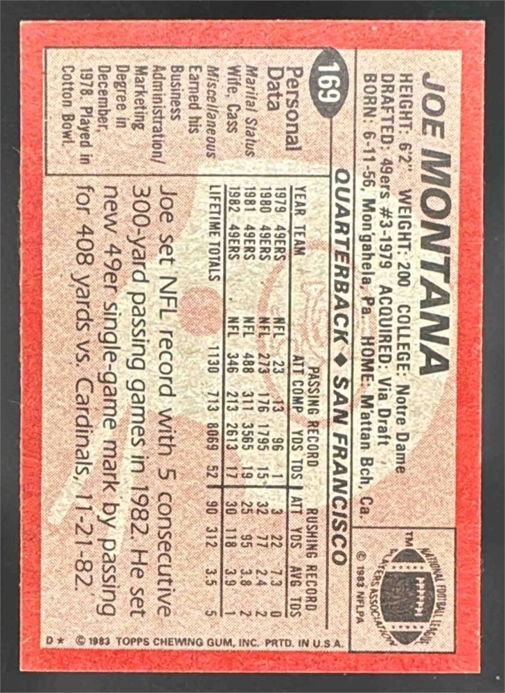 1983 Topps Joe Montana #169 49ers View Watchlist >