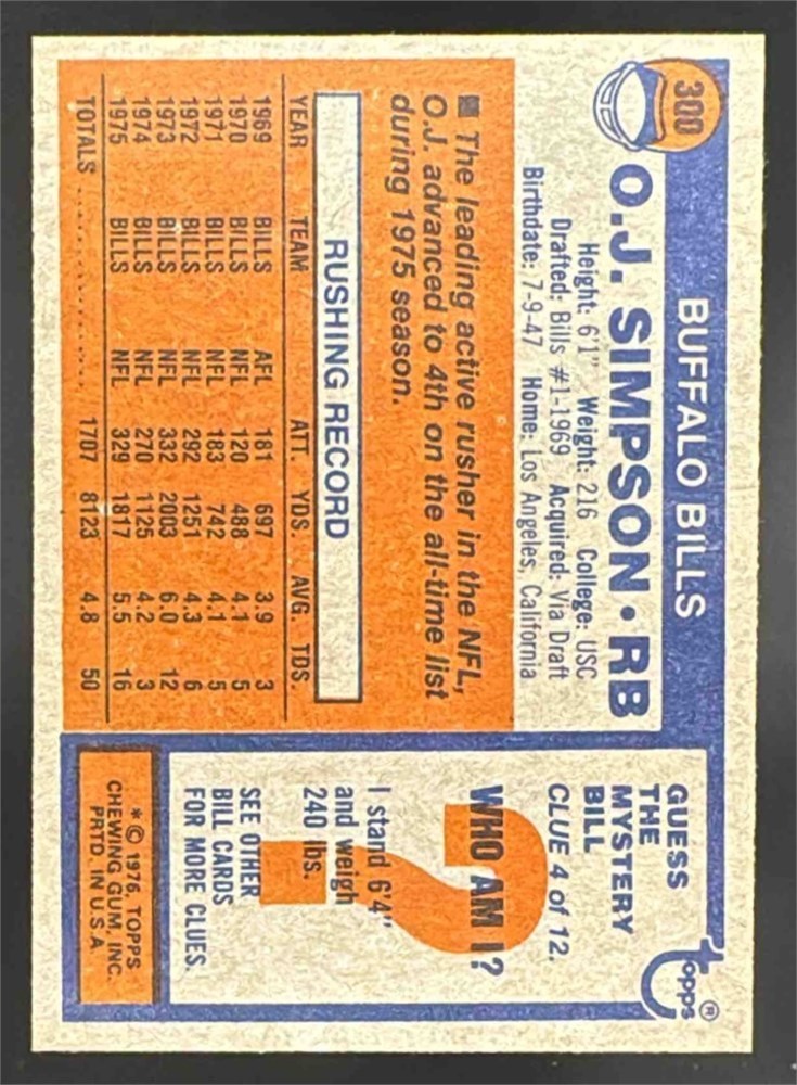 1976 Topps O.J. Simpson #300 Bills