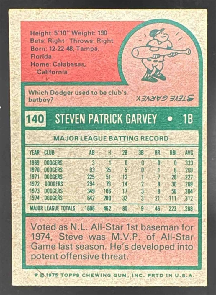 1975 Topps Steve Garvey #140 All-Star Dodgers