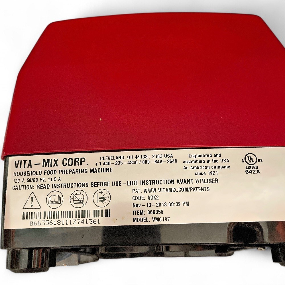 A Vitamix Explorian E310 professional-grade blender in red. It features a powerful 1340-watt motor for efficient blending. The blender includes a 48 oz. container and a mini tamper. It offers variable speed control with 10 settings for precise mixing. The container is made from durable, BPA-free Tritan plastic. 18" H x 9" D Good condition.