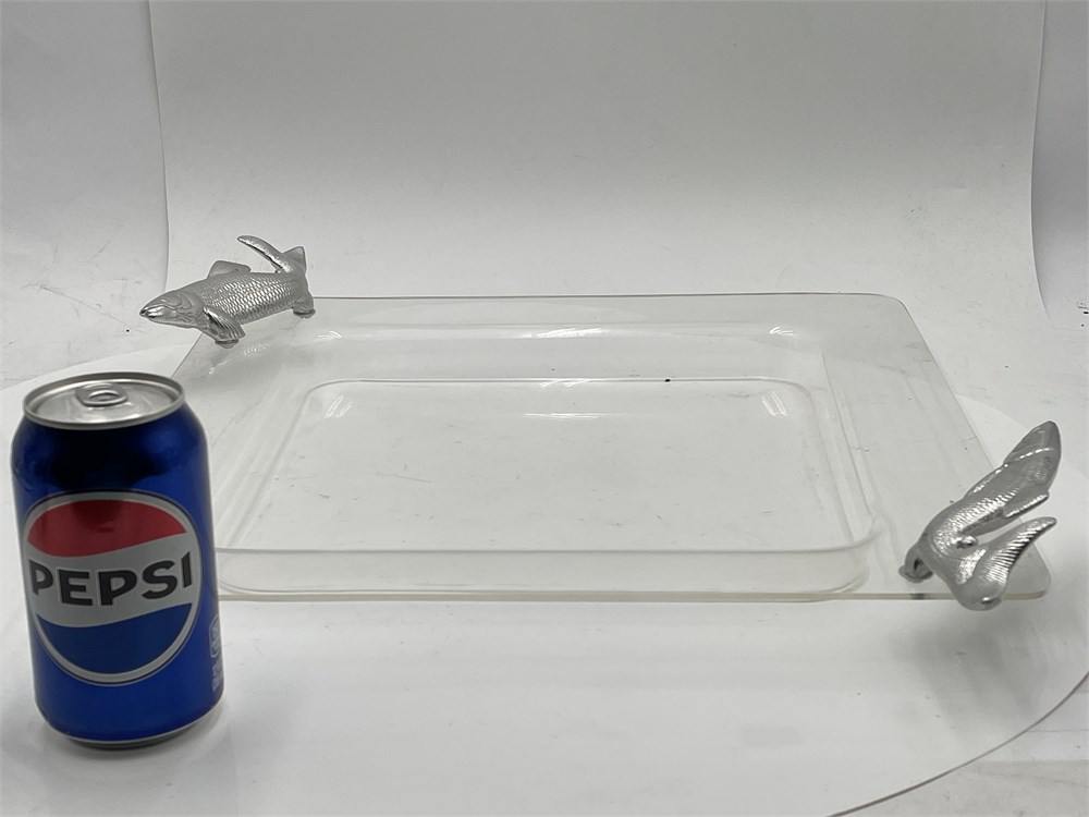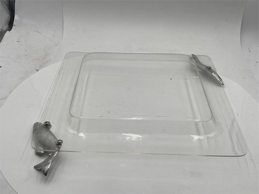 A Vintage Arthur Court Acrylic Square Serving Tray With Fish Handles View Watchlist >