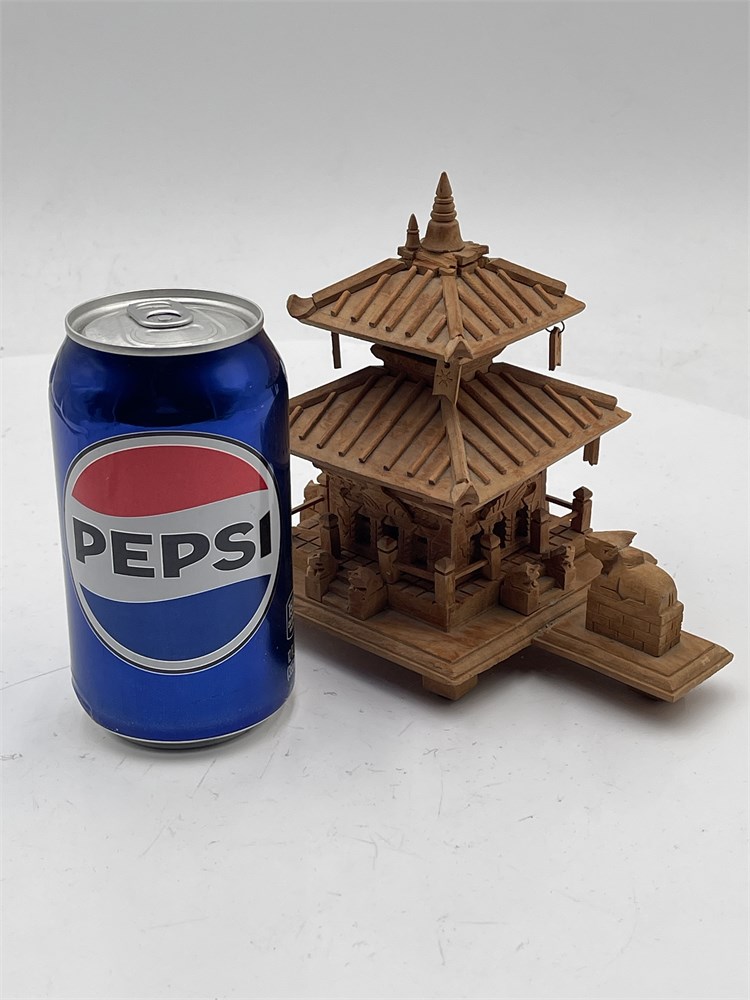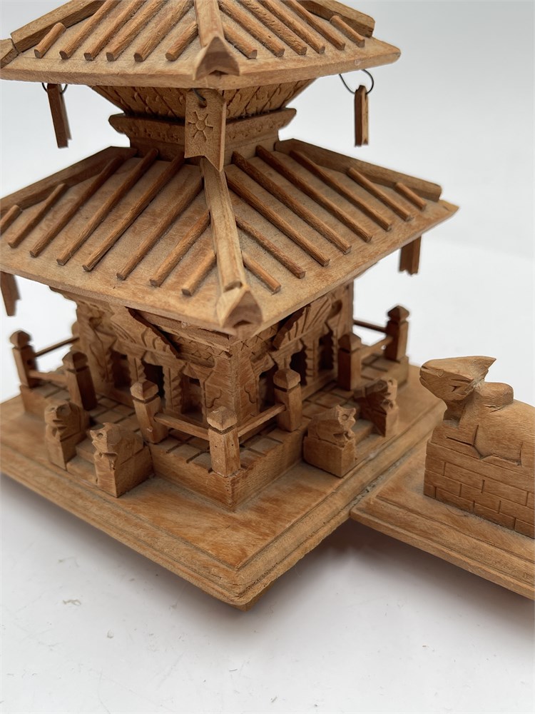 A handcrafted miniature replica of the Pashupatinath Temple in Nepal, made from natural wood. Features the traditional Nepali pagoda architectural style. Popular as a cultural souvenir or decorative home accent. Height is 6” Good condition.