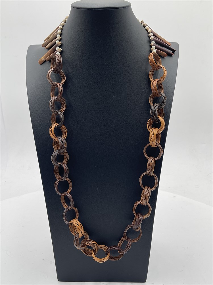 Tribal Sea Urchin Quill Necklace With Woven Basket Links View Watchlist >