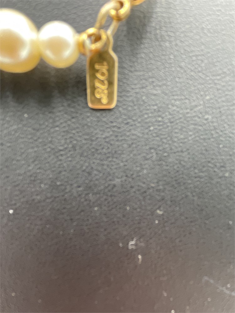 A 1928 brand faux pearl single-strand necklace. Length 8” Good condition.