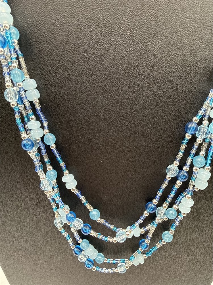 Multi-Strand Blue Art Glass & Crystal Beaded Necklace View Watchlist >