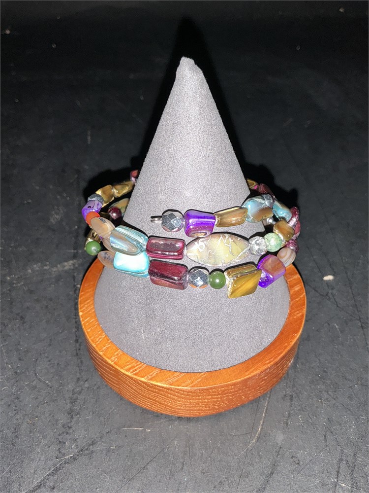 A multi-color beaded wrap bracelet, comprised of varying shapes, sizes and colors of beads. untwined 20" Good condition.