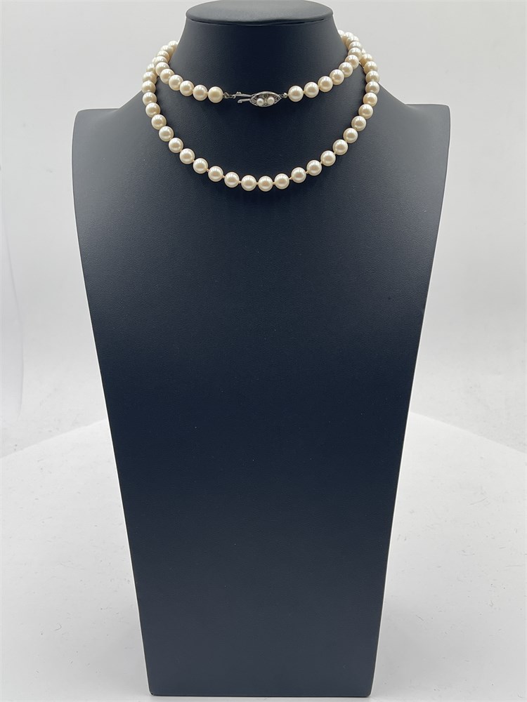 Vintage Single Strand Hand-Knotted Faux Pearl Necklace View Watchlist >