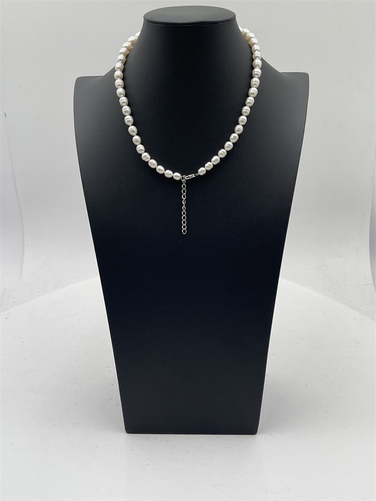 A graduated freshwater pearl necklace with chain extender. Length 9” Good condition.