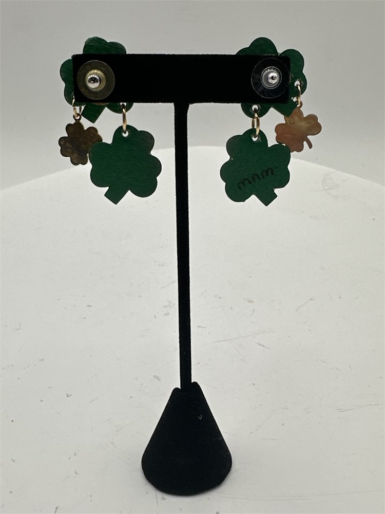 Pair Of Vintage Four-Leaf Clover Gold-Tone Dangle Post Earrings View Watchlist >