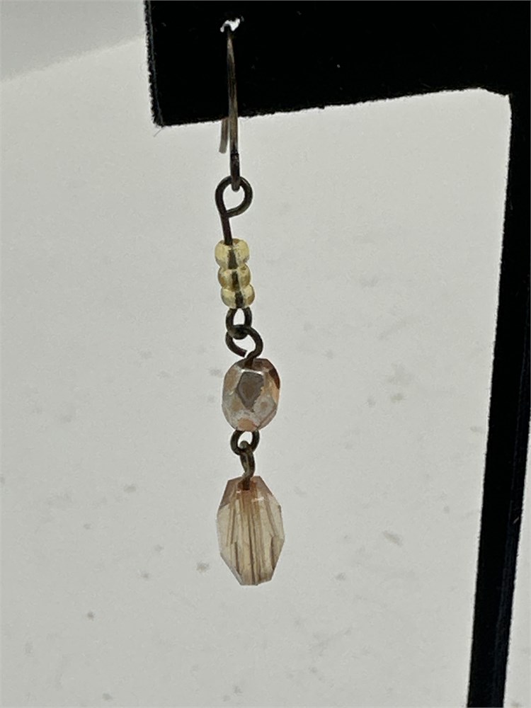 A pair of beaded dangle earrings made from silver-toned wire featuring clear faceted stones or glass beads. A drop/dangle style earring with multiple faceted crystal beads linked together on a metal wire or chain. The design consists of a small set of round seed beads at the top, followed by two larger, faceted oval beads. Good condition.