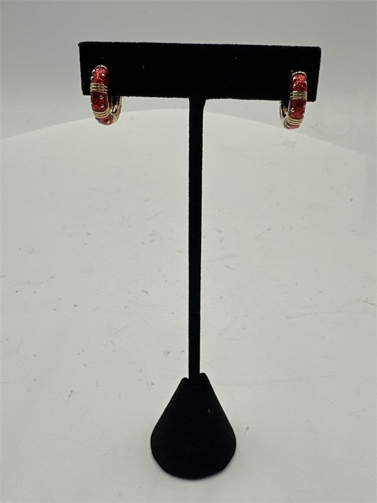 Pair Of Lauren G. Adams Colored Red Enamel Huggie Hoop Earrings View Watchlist >