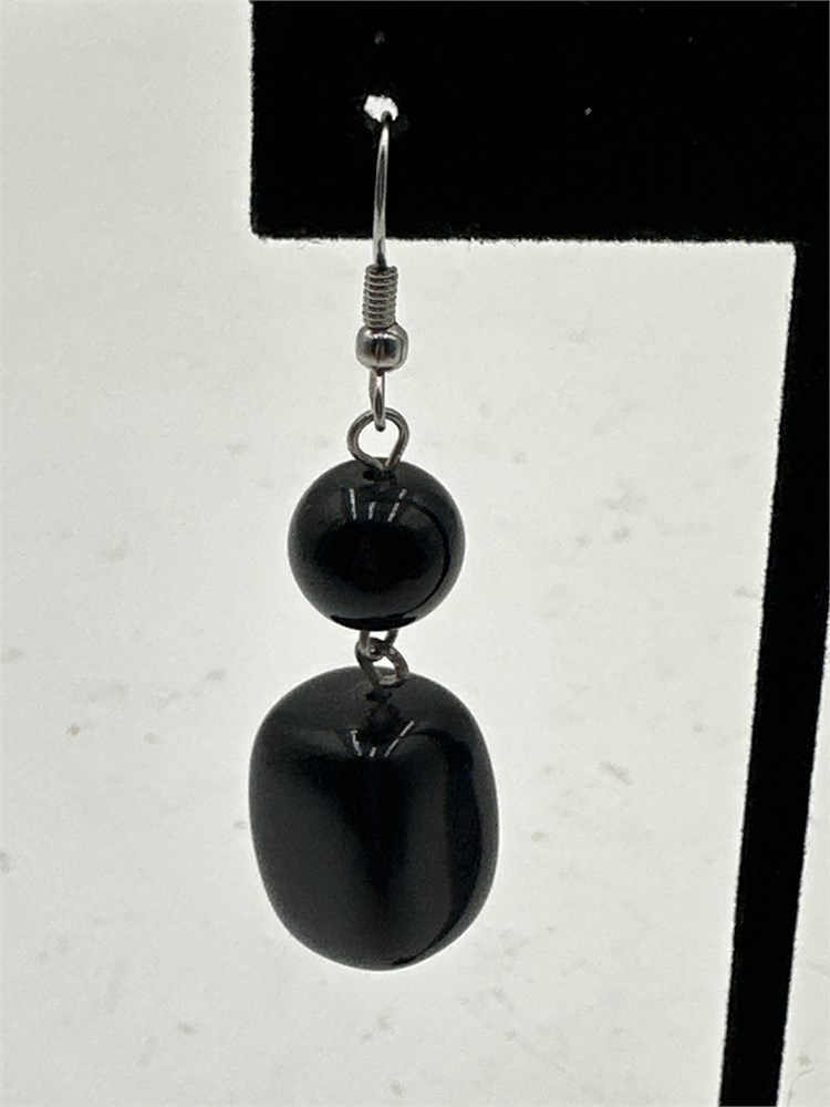 Pair Of Black Dangle Drop Earrings View Watchlist >