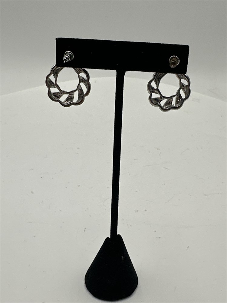 Pair Of Silver-Tone Cut-Out Twisted Wreath-Style Earrings View Watchlist >