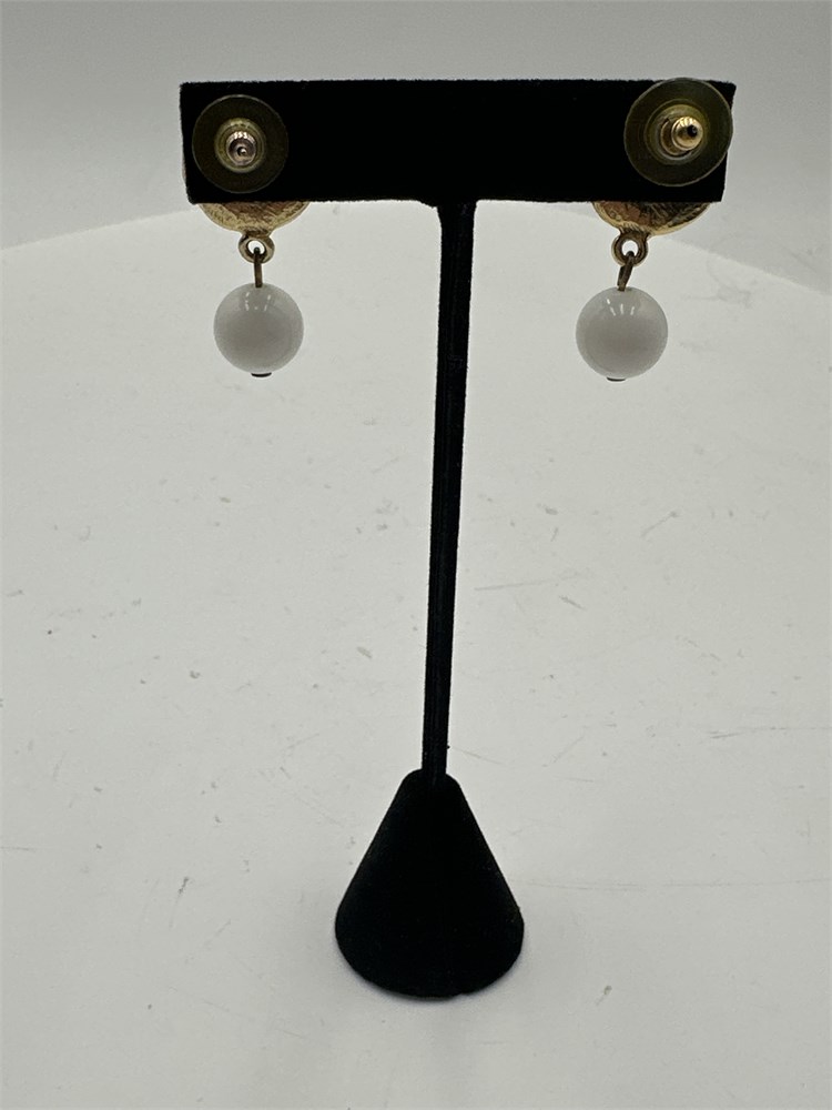Pair Of Gold-Tone Coin-Shaped Earrings With White Bead Dangle View Watchlist >