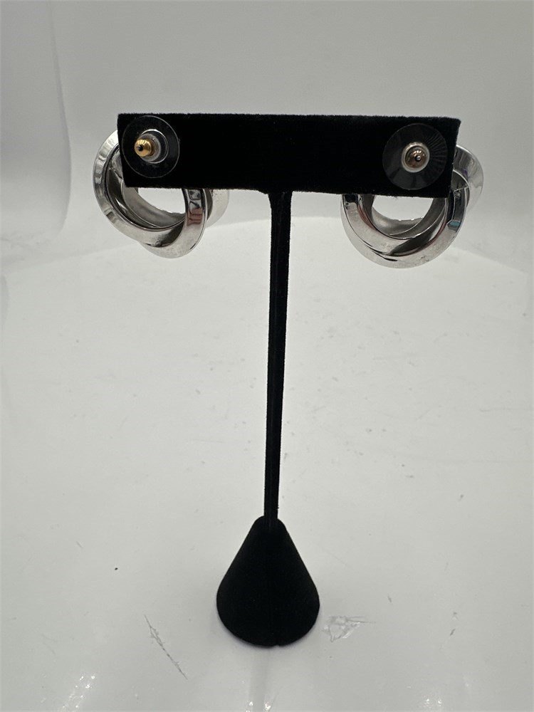 Pair Of Vintage Modernist Silver-Tone Earrings View Watchlist >