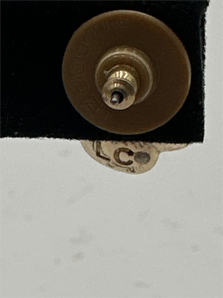 A pair of red enamel floral stud earrings with a central crystal accent. Signed "LC" at back. Good condition.
