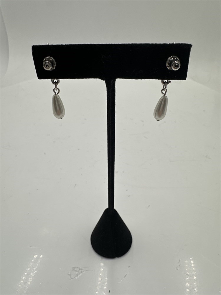 Pair Of Vintage-Style Post Dangle Earrings With Faux Pearl Drop View Watchlist >