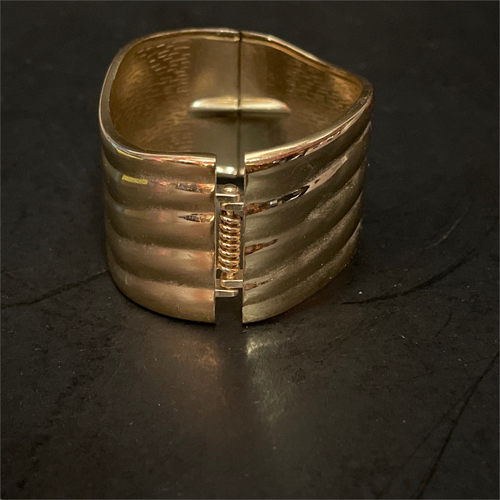 Vintage Gold-Tone Modernist Ribbed Hinged Clamper Bangle Bracelet, 1970s-1980s View Watchlist >