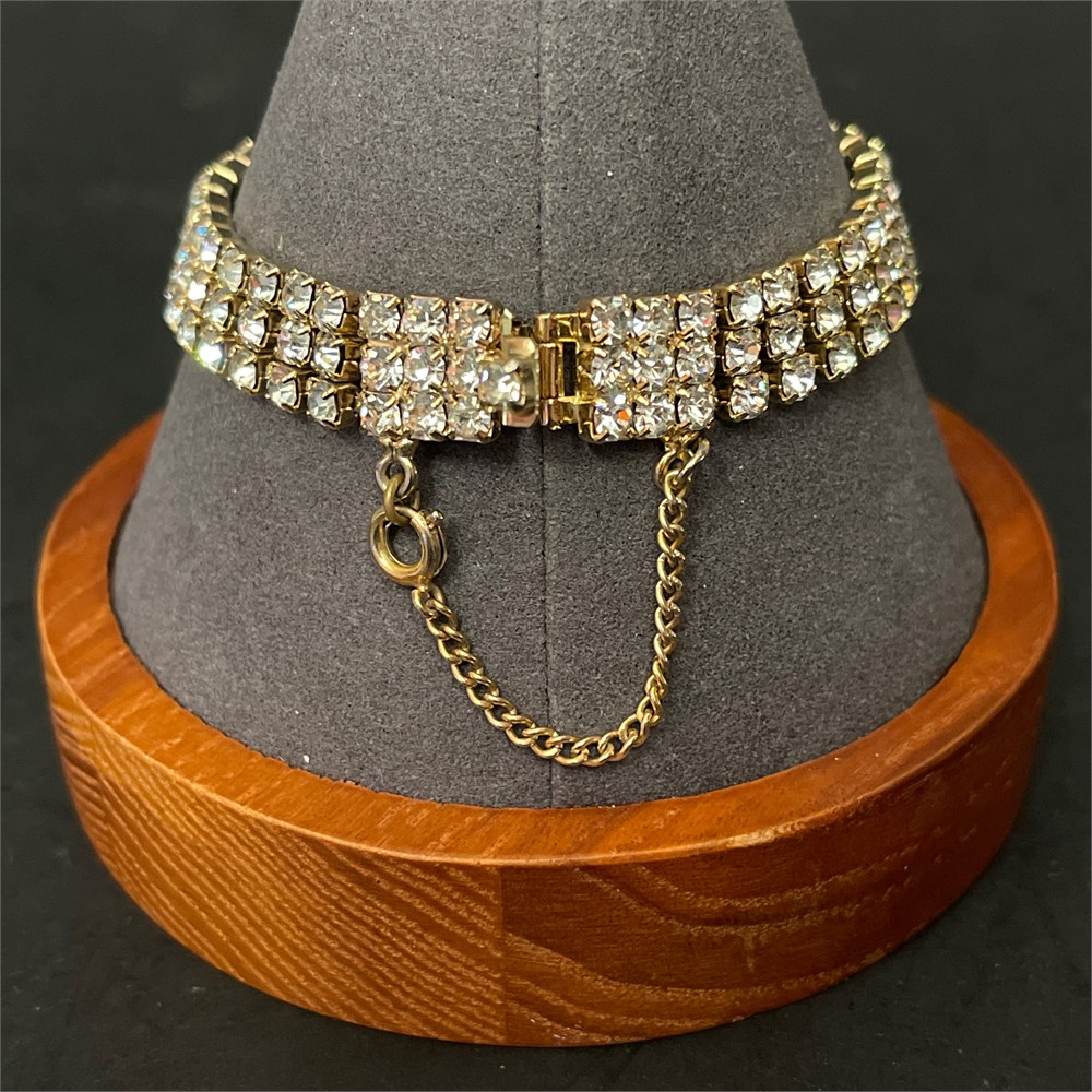 Unsigned Mid-Century Clear Rhinestone Bracelet with Large Oval Center Stone View Watchlist >