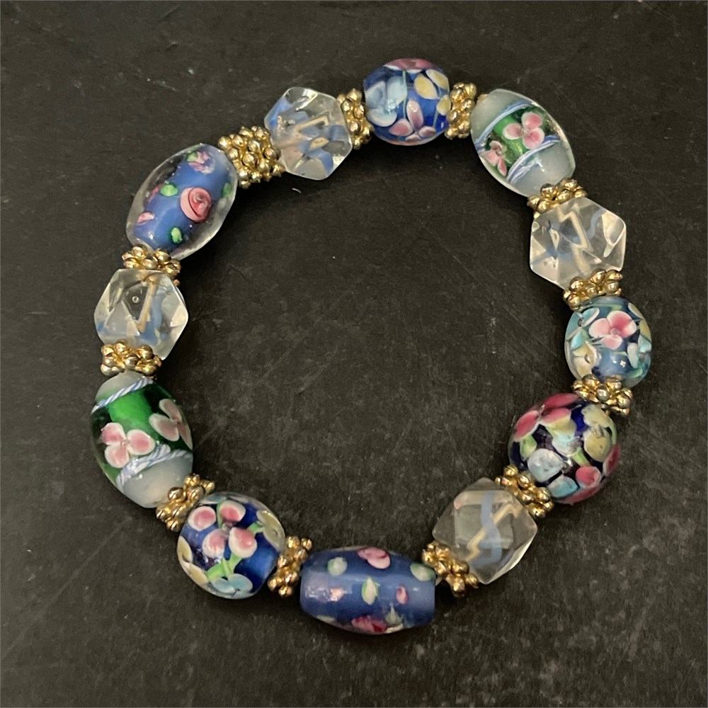 Venetian-Style Fiorato Lampwork Glass Bead Bracelet with Faceted Crystal Spacers View Watchlist >