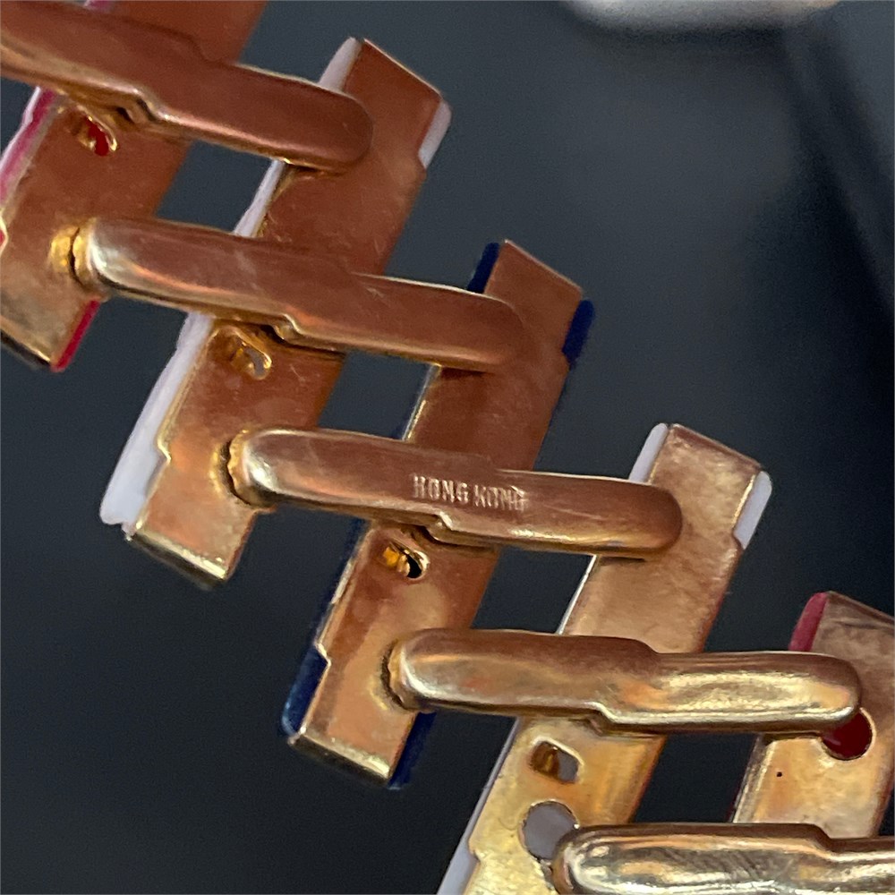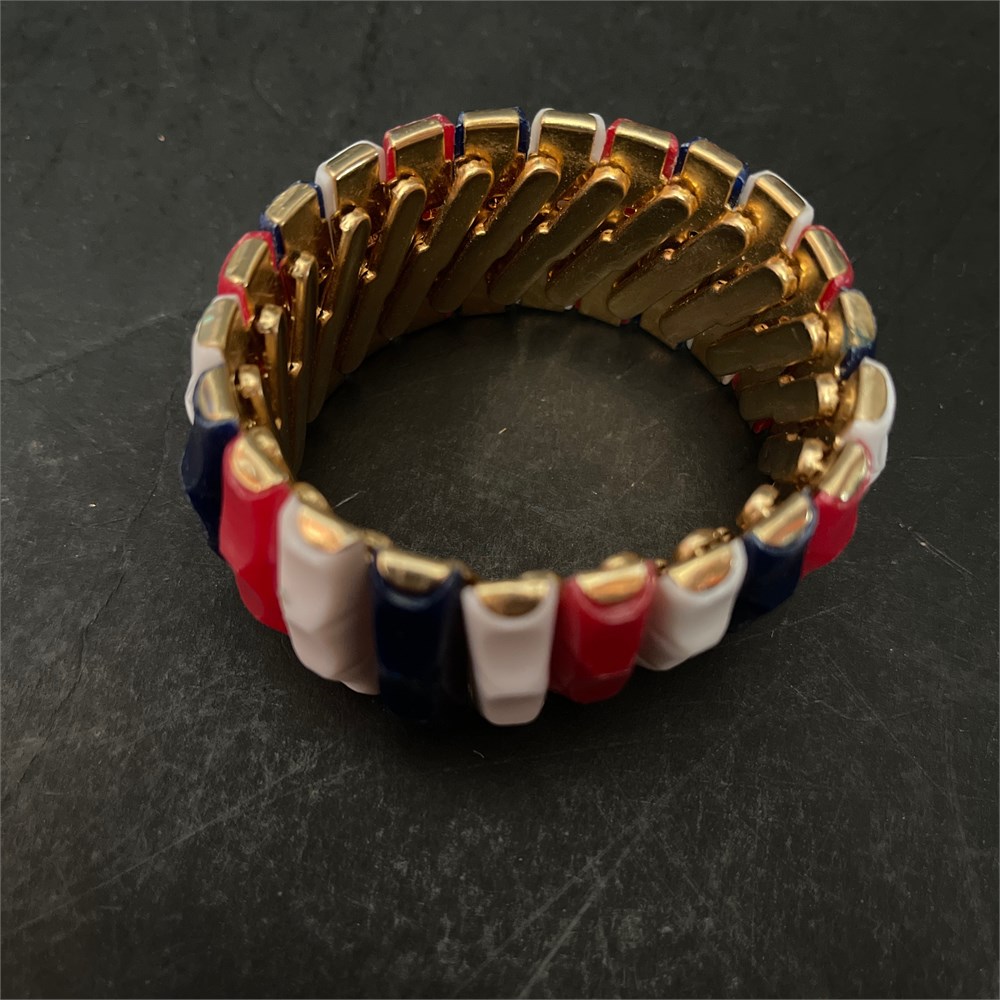 Vintage Red White & Blue Thermoset Plastic Expansion Bracelet, Mid-Century View Watchlist >