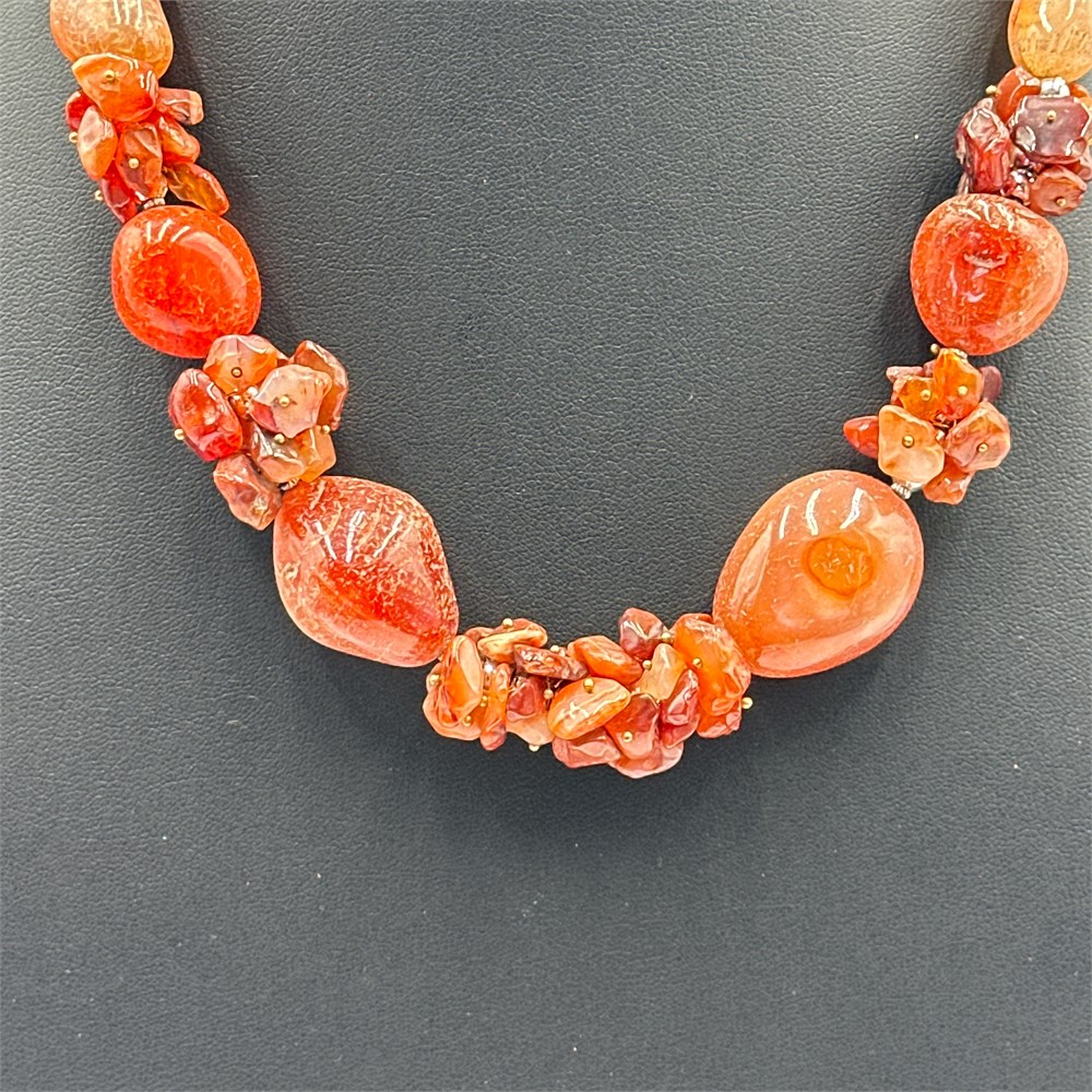 Natural Carnelian and Agate Chip Cluster Bead Necklace View Watchlist >