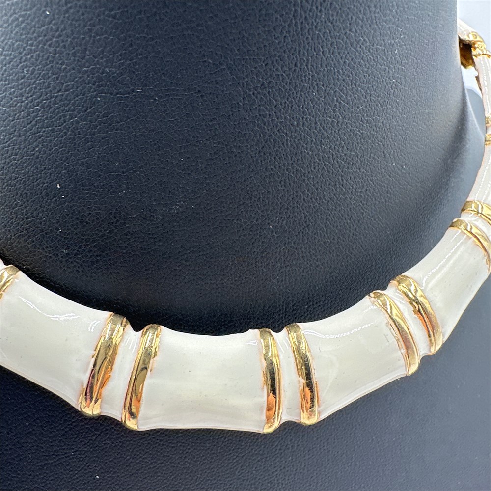 Cream Enamel and Gold-Tone Bamboo Style Collar Necklace View Watchlist >