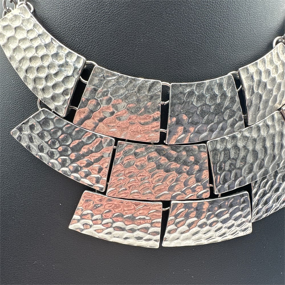 Hammered Silver-Tone Articulated Bib Statement Necklace, Multi-Tier Panel Design View Watchlist >