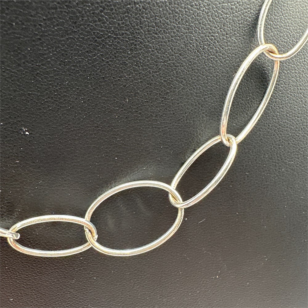 Silver-Plated Base Metal Oval Link Chain Necklace with Lobster Clasp and View Watchlist >