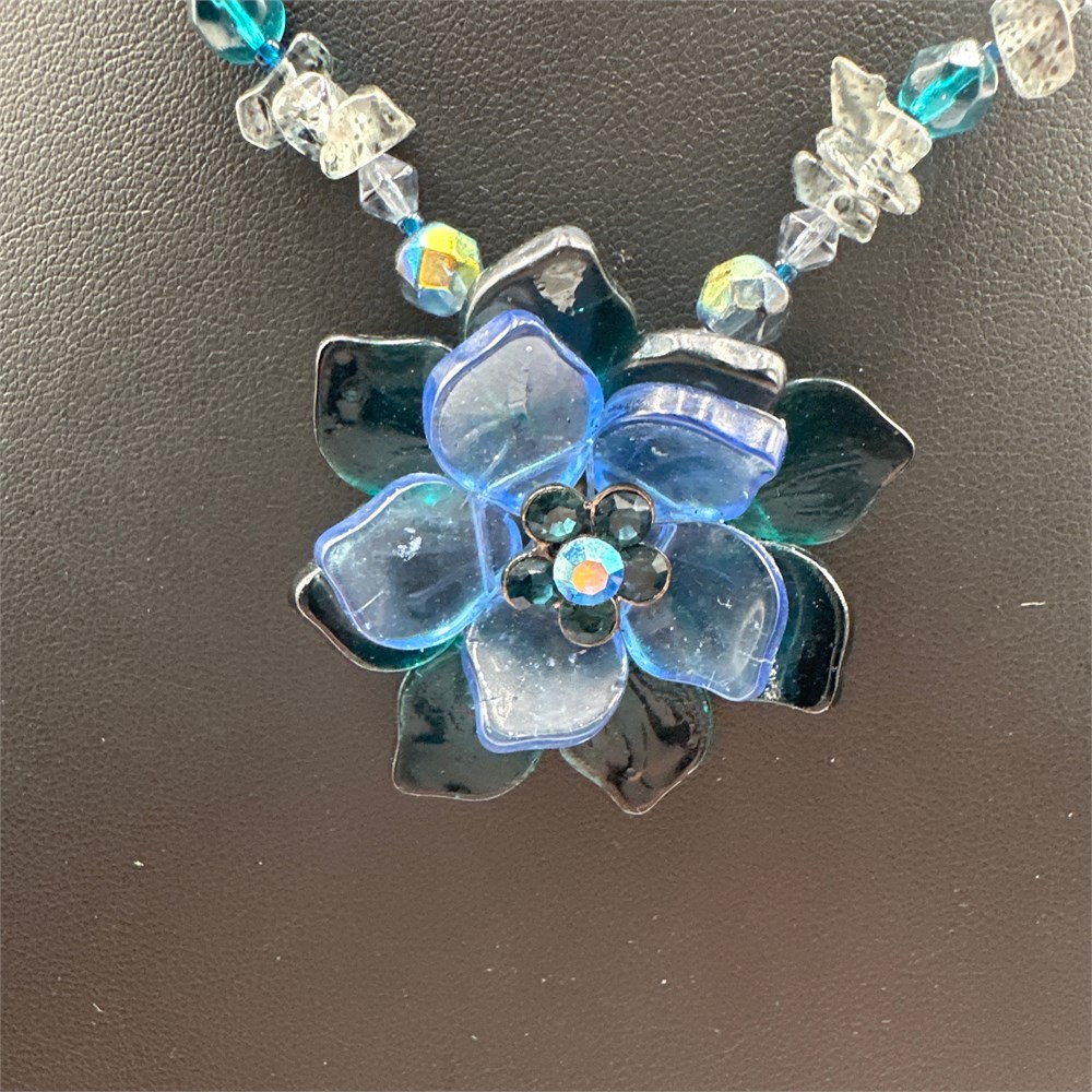 Contemporary Mixed-Media Floral Pendant Necklace with Aurora Borealis View Watchlist >