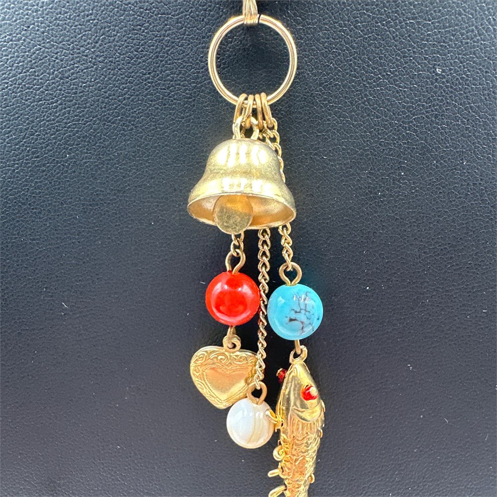 Vintage Gold-Tone Cluster Charm Pendant Necklace with Articulated Fish, Bell, View Watchlist >