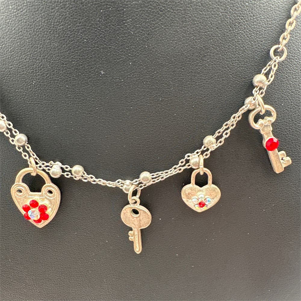 Nina Ricci Vintage Silver-Tone Charm Necklace with Heart Padlock & Key Motifs View Watchlist >