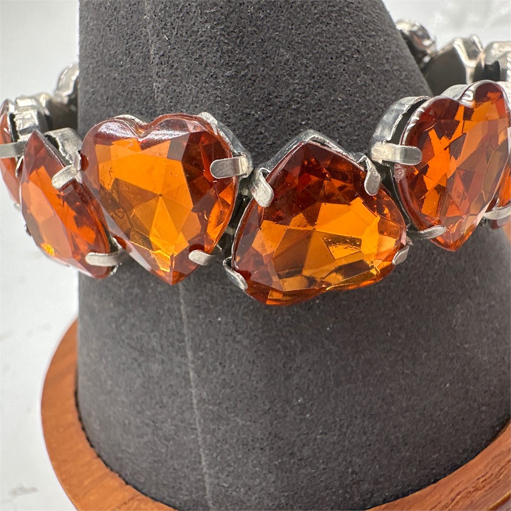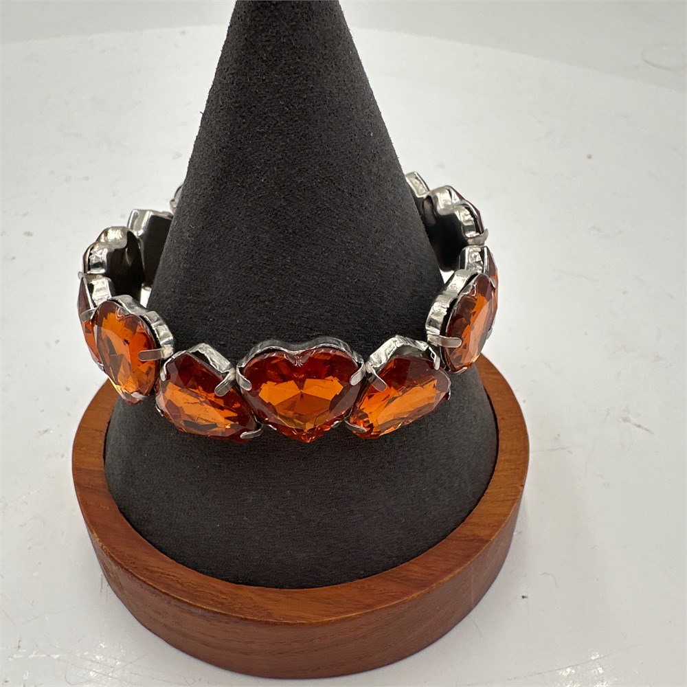 Vintage Costume Jewelry Heart-Cut Orange Rhinestone Stretch Bracelet, View Watchlist >