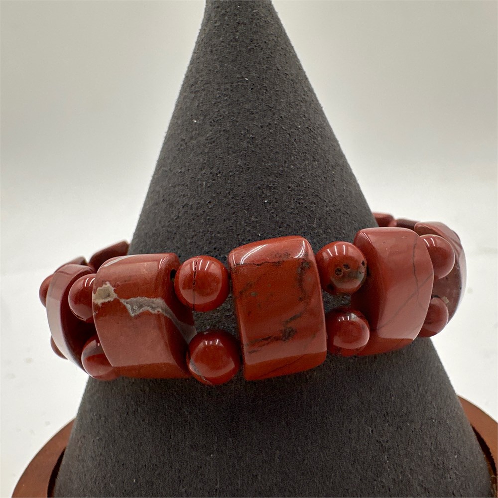 Contemporary Double-Strand Red Jasper Tablet Bead Stretch Bracelet View Watchlist >