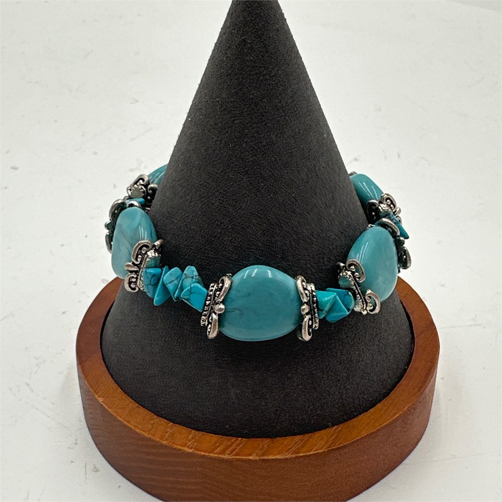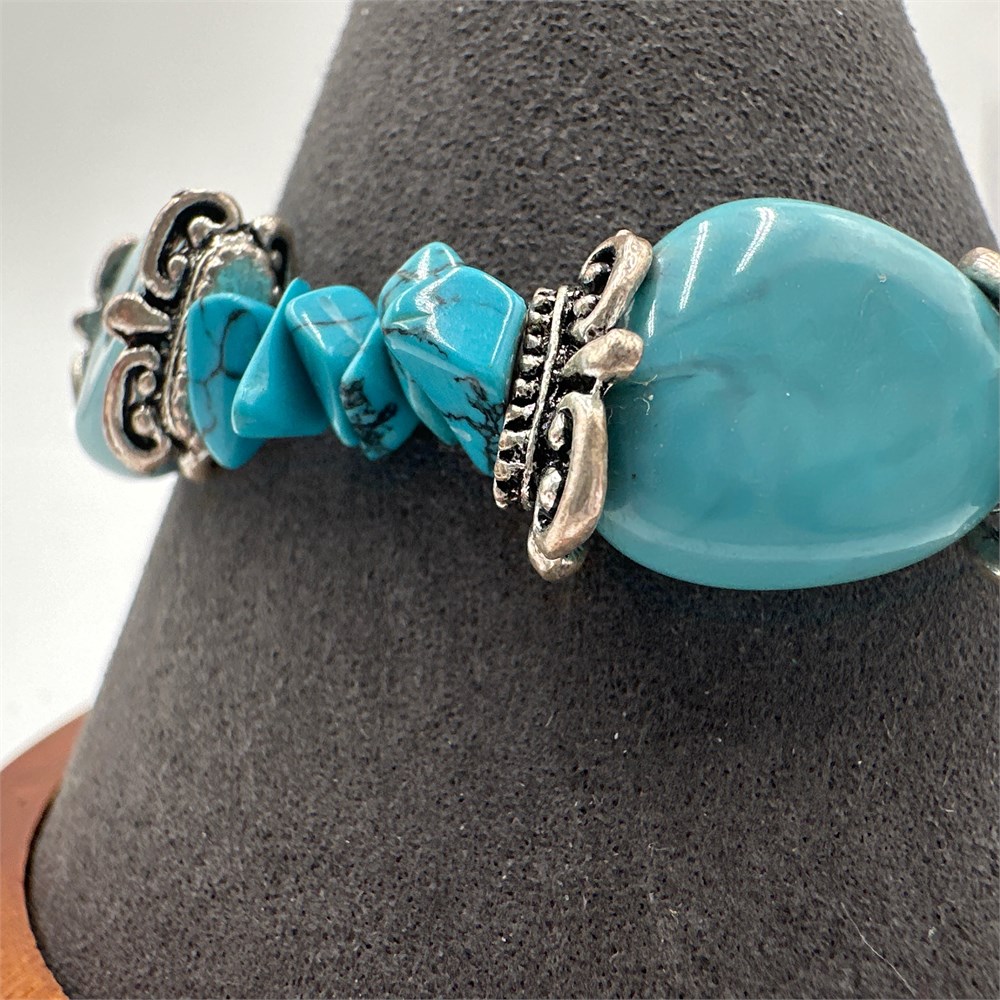 Turquoise-Colored Stone Nugget & Chip Bead Stretch Bracelet with Antiqued View Watchlist >