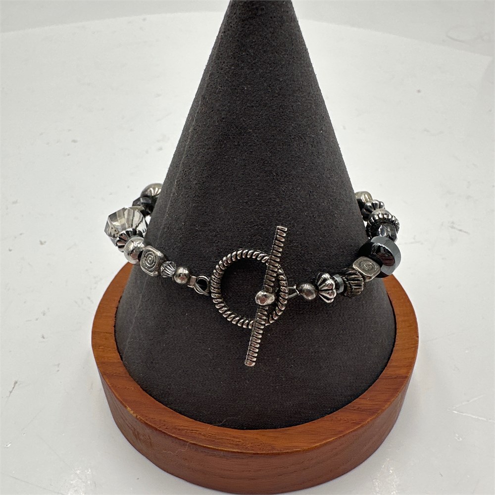 Silver-Tone Beaded Bracelet with Filigree Sphere Focal Bead & Faceted Crystal View Watchlist >